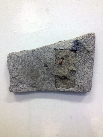 BLIND SPOT, 2016, gray granite, pencil without core and styrox, 22,5 x 31,5 x 3,5 cm