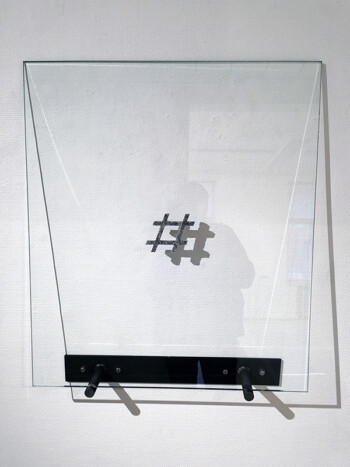 LÄSNÄ, 2020, editio 3+1 A.P., harmaa graniitti, lasi ja teräs, 80 x 70 x 15 cm.